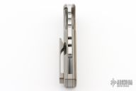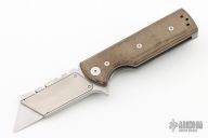 The CHUB (Chaves Handy Utility Blade) Flipper from Ramon Chaves features a replaceable utility blade. The handle has a green micarta scale, stonewashed titanium frame and a reversible titanium skull pocket clip. Has some light scratches, otherwise excellent condition.