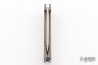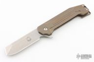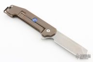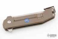 This GMT Razel GT Mid-Tech by Jon Graham features a stonewashed blade with flipper. The handle has an anodized and stonewashed titanium frame with matching tip up tail clip, satin finished lockbar stabilizer. Rides on bearings, nice detent, lockup and blade seating. Comes with a cloth case. Excellent condition.