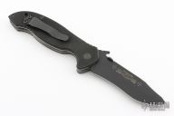 This Order of the Black Shamrock by Emerson knives features a black blade with notched thumbrest, thumbdisc and wave feature. The handle has black G-10 scales, titanium liners, black G-10 backspacer and black tip up stainless steel clip. Excellent condition. Comes with original box and papers.