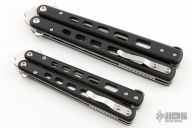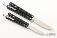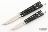The Small Boker Plus G-10 Balisong is a smooth-gliding flipper. It has a spring-loaded latch that, with a firm squeeze, will pop open to allow quick, one-handed blade deployment. The handles are made from G-10 with stainless steel liners that look and feel fantastic. This is the small version.