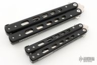 The Large Boker Plus G-10 Balisong is a smooth-gliding flipper. This Boker (Butterfly) has a spring-loaded latch that, with a firm squeeze, will pop open to allow quick, one-handed blade deployment. The handles are made from G-10 with stainless steel liners that look and feel fantastic. This is the large version.