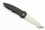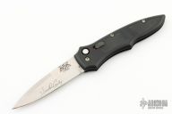 This Side Opening Automatic from Bat Cave Cutlery features a hand rub satin finished spear point blade with swedge. The handle is comprised of black anodized aluminium with non slip inserts. Sliding safety on handle. Blade was hand ground by Harold Corby. Excellent condition. Includes original box.