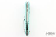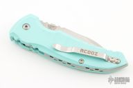 - Aquamarine colored handle made from aluminum.