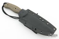 This Ratmandu by Swamp Rat Knives features gray coated clip point blade, .196" Blade Stock and 1.370" Blade Depth, full tang construction. The handle is contoured OD Green canvas micarta scales. Includes a custom kydex sheath with TekLok. Has been resharpened, but the edge is better than original, excellent condition.