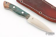 This Mini Aurora by Bark River Knives features a satin finished blade with .127" blade stock and .980" blade depth, full tang construction. The handle has Deep Blue & Rust Maple Burl scales. Comes with a brown leather sheath and original box. Excellent condition.