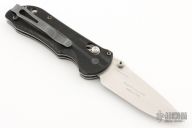 This is a Benchmade mini stryker features a satin drop point blade with dual thumb studs and a notched thumbrest. The handle features black G10 scales over steel liners and a black tip up pocket clip.  Includes the original box. Excellent condition.