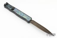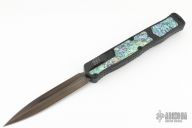 This Cleric II OTF by Heretic Knives features a DLC stonewashed double edged Magnacut blade with fullers. The handle has a black aluminum frame with abalone inlays, DLC titanium tip down clip with ceramic ball. Comes with original pelican case with plaque and 6 bottles of lube. New Condition. Dated 06/2023 and #002