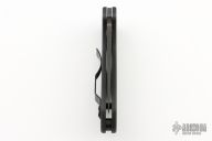 Handle: Peel ply textured, chamfered black G10 scales house inset skeletonized stainless liners, one forming the Compression Lock mechanism. A generous palm swell, index groove and pinky hook offer comfortable ergonomics and a secure grip for most users.