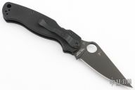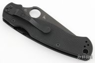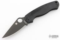 This Paramilitary 2 by Spyderco has a black clip point blade with thumb hole and notched thumb rest. Handle is black G10 with stainless steel liners and black stainless steel 4-way reversible clip. Comes with original box and papers. Excellent condition.