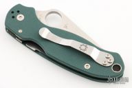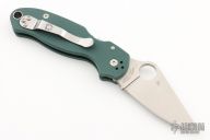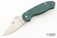 This Para 3 by Spyderco was a Knifeworks Exclusive. It  features a satin finished blade with thumbhole and notched thumbrest. The handle has green G-10 scales with stainless steel nested liners, 4-way reversible clip. Comes with original box and papers. Excellent condition.