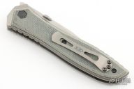 This knife by Zero Tolerance is an Emerson design. It features a two-tone blade with thumbdisc. The handle has black canvas micarta scales, stonewashed titanium frame and tip up titanium clip, left or right reversible. Comes with original box, and papers. Excellent condition. s/n 5967