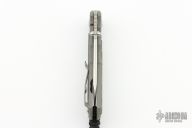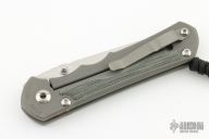This large Inkosi features a tumble finish blade and a bead blast titanium and black canvas micarta inlays. Bead blast titanium clip, tip up carry. Has dual thumbstuds and barrel spacer. Includes original packaging and maker's card dated May 23, 2022.  Excellent condition.