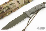 "Continuing the proud tradition of Chris Reeve Knives honoring elite military, the Reeve/Harsey collaboration - the Pacific - is the civilian version of a knife created to celebrate the 50th Anniversary of 1st Special Forces Group. Based in Ft. Lewis, WA, 1st Group's theatre of operations is Asia and the Pacific, so the name Pacific has been chosen to honor the home and work place of these fine soldiers." This knife has a clip point OD Green blade with .224" blade stock and 1.405" blade depth, full tang construction with canvas micarta scales. Comes with camo nylon spec-ops sheath. Comes with original box and papers dated June 29, 2022.  Excellent condition.