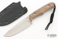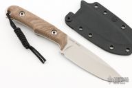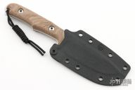 With backpacking hunters and outdoorsmen in mind, the Backpacker is a lightweight knife designed for skinning and utility.  A tribute to Chris' original 1980s Backpacker design, the newest iteration echos Chris' original details with modern materials. Its blade provides ample belly and a drop point shape for more control.  Its canvas Micarta handles provide comfort without sacrificing agility, though they can be removed for deep cleaning or extra-lightweight hiking.  The slim KYDEX® sheath fits snugly with the Backpacker's handles on or off.  Razor-sharp and made to last, the Backpacker will work hard from the backcountry to home.
