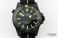 Forged carbon, individual carbon fibers combined with a composite material, is the defining case material. Under intense heat and pressure, a matt black blankis created from which the final case sculpture is formed, its velvety surface as unique as any fingerprint. Forged carbon is typically used in aviation and aerospace, and combines the exceptional qualities of metal and ceramic: making the case lightweight, highly resilient, and extremely corrosion-resistant. The combination of a screw-down case back, which displays a historic diving helmet in relief as well as the limited edition number, a screw-in crown, and a manual helium valve makes the watch water-resistant to a depth of 300 meters (30 ATM). Inside the case, a concealed DAV3021 Swiss automatic movement ticks away reliably.