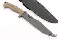 This Wilson Combat Bowie by Winkler Knives is a Jason Knight design, it features a black caswell finished blade with false top edge, .269" blade stock and 2.023" blade depth, full tapered tang construction with green canvas micarta scales. Comes with a lined kydex sheath, original box and papers. Excellent condition. #017