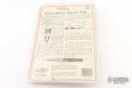 This Guardian by Gerber features a double edged black blade with a hidden tang construction. The handle is black aluminum. Includes a black sheath. Comes in the original unopened packaging. Excellent Condition.