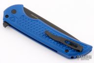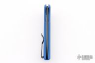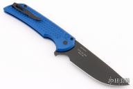 This Mordax by Pro-Tech is a Ferrum Forge design and features a black drop point blade. The handle has milled a blue aluminum frame with black tip up stainless steel clip. Black Lip Pearl inlaid push button. Comes with original box and papers. New from maker!
