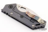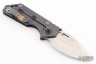 This 3/4 AR by Strider Knives features a satin finished blade with notched thumbrest and thumbhole. The handle has a tumbled and anodized titanium frame with a stonewashed titanium tip up clip. Nice detent, lockup and blade seating. Excellent condition.