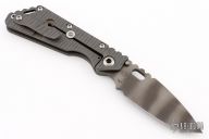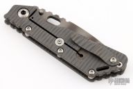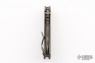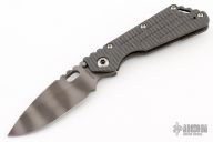 This Mick Strider Performance Series SMF framelock folder features a black finished spear point blade with thumbhole and notched thumbrest. The handle has a flamed titanium frame with titanium clip, tip up carry. Jimping on blade spine. Includes Hinderer "Lock Bar Stabilizer" for maximum reverse lock retention. Nice detent, lockup and blade seating. New from maker at the 2023 CCKS.