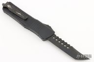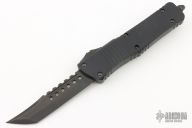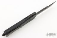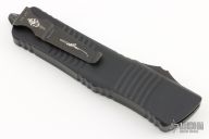 This Combat Troodon by Microtech Knives features a tumbled DLC Hellhound blade with false top edge. The handle has a black aluminum frame with tip down black stainless steel clip black hardware. Comes with original box. 06/2021 and S/N 277. Excellent condition.