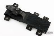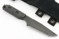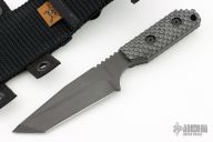 This DB-L from Strider Knives features a clip point tanto style blade with black finish and notched thumbrest, .250" blade stock and 1.296" blade depth, full tang construction. The handle is comprised of black G-10 gunner grip scales. Comes with kydex sheath. Has a couple light scuffs, otherwise excellent condition.