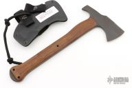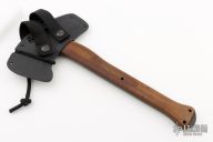 A combination tool developed for Military and Law Enforcement use, the WK Combat Axe is made for breaching and combat applications. The user has easy access with a fast draw carrier. An integral glass breaker extends beyond the end of the handle. The WK Hammer Combat Axe is basically the same axe as the WK Combat Axe, but with a hammer pole rather than a spike. It is a great woodcraft or field axe or performs well as a breaching axe when hammering is part of the operation. Axe Specifications Axe steel: 80CrV2 Black oxide no-glare finish Head length: 5 7/8" Overall length: 13 3/4" Blade thickness: 3/8" Skeletonzied full tapered tang Integral Glass Breaker Hammer version Sheath Fast draw carrier Lined Kydex® HD shockcord quick-release retention system Nylon belt straps with Mil-Spec Pull-The-Dot™ snaps Designed for multiple carry options (See our Info page for carry options) Comes with original box and papers. Has some grease or something on the blade, i couldn't get it all off, otherwise good condition.