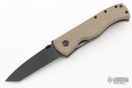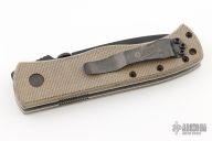 This production CQC-7 by Emerson has a black tanto chisel ground blade with a right hand grind. Green Canvas Micarta scales, titanium liners, barrel spacers, milled thumb disk and a tip up black stainless clip. Excellent condition. TE070-100. Includes original box and papers.