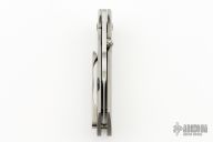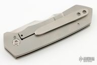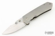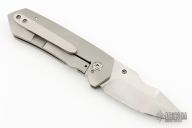 This framelock folder by KC Gray features a hand rub satin finished blade with dual thumbstuds. The handle has a bead blast finish titanium frame, with matching tip up clip and spacers. Rides on bearings, nice detent, lockup and blade seating. Comes with COA dated 4-20. Comes with zippered case. Has a couple light scuffs, excellent condition otherwise.