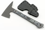 The Jenny Wren Spike offers full tang construction and 1/4" 80CRV2 carbon steel (57-58 HRC) is used in its construction. 3D contoured G10 handle scales are incorporated for grip and durability. The tomahawk has a Cobalt Cerakote finish that facilitates greater resistance to wear, corrosion, chemical and impact damage, as well as providing a low visibility look.