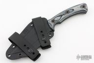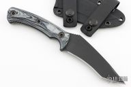 The blade has a Graphite Black Cerakote finish for corrosion resistance and a low vis look.  The beveled and contoured G10 grips feature diagonal texturing for an aggressive but comfortable and secure grip. The Peregrine comes with a molded kydex scabbard including two MAD straps that allow for scout carry (horizontal) and inside the waistband (IWB) vertical carry. The sheath is MOLLE compatible and can also be attached to any pack, plate carrier or similar gear with PALS webbing.  The scabbard will work with most of the popular clips and mounts like the Discreet Carry Concepts Clip and UltiClip.