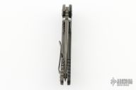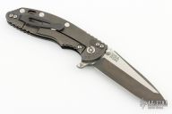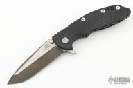 This XM-18 Flipper by Rick Hinderer Knives features a 3.5" Stonewash Black DLC Two-Tone finished blade, notched thumbrest and flipper, dual thumbstuds. The handle has a black G-10 scale, black DLC stonewashed titanium frame, clip can be mounted for tip up or down carry. Nice lockup, seating, and detent. Comes with extra pivot hardware, original box and papers. Excellent condition.