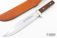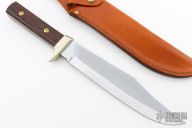 This Original Bowie by Puma features a satin finished blade with false top edge, .181" blade stock and 1.941" blade depth, full tang construction. The handle has a nickel silver guard, rosewood scales. Comes with original brown leather sheath. Has some light scratches, otherwise excellent condition. #45982 (1989)
