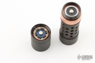 This classy light from The Barrel Flashlight Company features a DLC titanium body, ring sleeve, and 3D milled clip. From the makers site: Barrel Flashlight Co. flashlights are proudly made in USA. Our lights are turned from solid round bar. About 1000 lumens on high depending on LED’s selected Triple LED output with builds with Cree XP-L HI 5K. The “ pill “ that houses the LED’s and driver is machined from solid for optimum performance and heat transfer. Light measures 3.5 inches long and just under 1 inch in diameter. Light runs on an Efest high capacity 700mAh 16340 unprotected button top rechargeable IMR battery (not included). Interchangeable barrel rings, barrels ( inner sleeve), clips, and screws to customize your light and ability to match your EDC. Light is built with one of the most advanced drivers on the market: the fully programmable H17F with battery monitoring. The H17F comes in a very user friendly set default of moonlight, low, medium, and high. Rear “ clicky “ button cycles light through modes. For the avid flashlight hobbyists , a secret hidden mode can be entered to program the light. Light is water resistant. Light tailstands very well. Comes with original box, packaging, and signed/dated certificate of authenticity dated 11/23. Excellent condition.