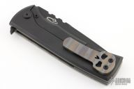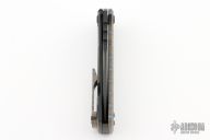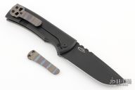 This Chaves Ultramar Redencion drop point features a satin finished blade. The handle is made up of a flamed and black coated titanium, skull pocket clip (positioned for tip up carry), and a matching titanium backspacer. Comes with original box and an extra regular titanium pocket clip. The knife opens with the use of Lee Williams' Kick Stop flipper.  Includes the original box. Excellent condition.