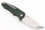 This Smooth Criminal by Medford knives features a stonewashed drop point blade with flipper. The handle has a dark green aluminum frame with a titanium clip. Nice lockup and blade seating. Comes with the original box and papers.  Excellent Condition.