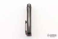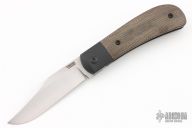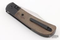 This Lanny's Clip Front Flipper by Enrique Pena features a satin finished blade with a front flipper and notched thumbrest. The handle has titanium bolsters, green canvas micarta scales with a titanium backspacer and matching tip up pocket clip. Includes a Pena X-Series padded box. Excellent condition.