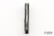 This Void model has a marble carbon fiber handle with a black titanium frame and a satin finished M390 steel blade. The Sharp By Design Void offers a compact and stylish design from celebrated knife-maker Brian Nadeau. It was designed for comfortable EDC use and carry, with a "Void" hole in the blade for finger flick opening and a low profile flipper for more traditional one-hand deployment. The blade provides a nice deep belly with a hollow ground bevel for maximized cutting and slicing performance. These Void models are produced by Reate for an ultra-clean fit and finish. Features: Bohler M390 blade steel for excellent edge retention, corrosion resistance, and a high level of toughness. Finger flick "Void" hole and a low-profile flipper offer one-handed, ambidextrous deployment. Item includes a titanium pocket clip for comfortable tip-up carry. Comes with original box. Has a couple light scratches, otherwise excellent condition.