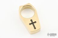 This Model #6, single finger brass knuckle by WK21 is made from solid .500” thick 360 Brass. The dimensions are approximately 2.25” x 1.25” x .5” with 1-inch diameter finger holes. Two-tone finish with Micro-brushed satin fingerprint resistant flats and mirror polished edges. Woody Knuckle design and finishing process. Individually boxed. 100% Made in the USA. New from maker.