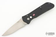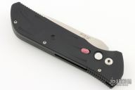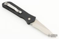 This Python side-opening automatic from Dynamic Knife Designs has a satin finish plain edge blade and a black aluminum handle. Coil spring. Stainless steel clip. Sliding safety. Excellent condition. Comes with original box and papers.