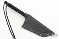 The WP-L Tanto by Mick Strider features a black blade with false top edge, .227" blade stock and 1.330" blade depth, full tang construction with black paracord wrapped handle. Comes with kydex sheath. Excellent condition.