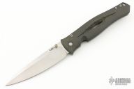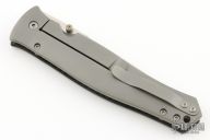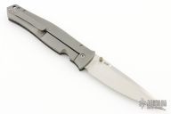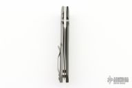 This Dr. Death by Tom Mayo features a hand rubbed satin finish blade with false top edge and thumb studs.  The handle has a carved carbon fiber and titanium frame with a matching tip up pocket clip.  Nice detent, lockup and blade seating. Excellent condition.