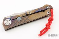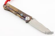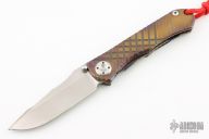 This Umnumzaan Framelock Folder by Chris Reeve Knives has a stonewashed clip point blade with a notched thumbrest and dual thumb studs. The handle has a custom anodized and milled titanium frame/tip up pocket clip. Excellent Condition.