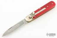 This lever lock auto by Boker features a drop point blade, nickel silver bolsters, dyed bone scales, brass liners and stainless steel backspacer. Has a couple light scratches, otherwise excellent condition.