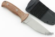 "Prior to retiring in 2000 from the Minnesota Army National Guard as a Brigadier General, I had started making "kit knives". After retiring I graduated to grinding and heat treating my own blades. I now do everything from original blade design through making my own leather sheaths. My primary areas of interest are fixed blade hunting and fishing knives along with my original Air Assault Knife. I am primarily self-taught, with heavy reliance on some of the great books available and the mentorship of members of the Knifemakers Guild, of which I am a 2006 voting member. I use various steels, either flat or hollow grind and primarily use natural handle materials, or Micarta if the knife is going to be put to hard use and extreme conditions. To the best of my knowledge I am the only retired military flag officer making handmade knives."