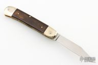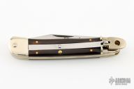 This leverlock auto by Hubertus features a mirror polished blade, nickel silver double bolsters, linen micarta scales, brass liners and pins. Opens with a nice snap. Very fast opening. Has a few light scratches, otherwise excellent condition.