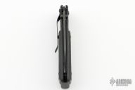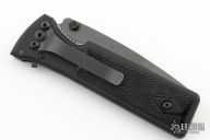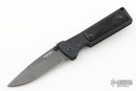 This knife by Foster Knives USA features a black blade with false top edge and dual thumbstuds. The handle has a black aluminum frame with 1911 style grips, tip down clip. Comes with original box. Excellent condition.