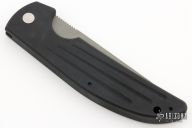 This vintage Benchmade 7500S automatic knife features a black anodized 6061-T6 aluminum handle with taper lock and firing button. The bead blast finished ATS-34 tanto partially serrated blade. Has some light scuffs, otherwise excellent condition. Comes with original box, sheath and papers.
