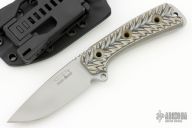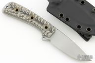 This SAR 3 SE by the Busse Combat Knife company features a bead blast finished blade with notched thumbrest, .159" blade stock, 1.096" blade depth. Full tang construction with textured black/tan G-10 scales. Comes with a kydex sheath with TekLok. Has a couple light scratches, otherwise excellent Condition.