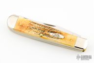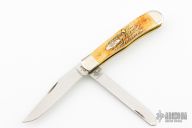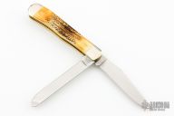 This Stag Trapper by Case features 2 mirror polished blades with nail nicks. The handle has nickel silver threaded bolsters, stag jigged bone covers, with a Case shield, brass liners and stainless springs. Comes with original box and papers. Excellent condition.